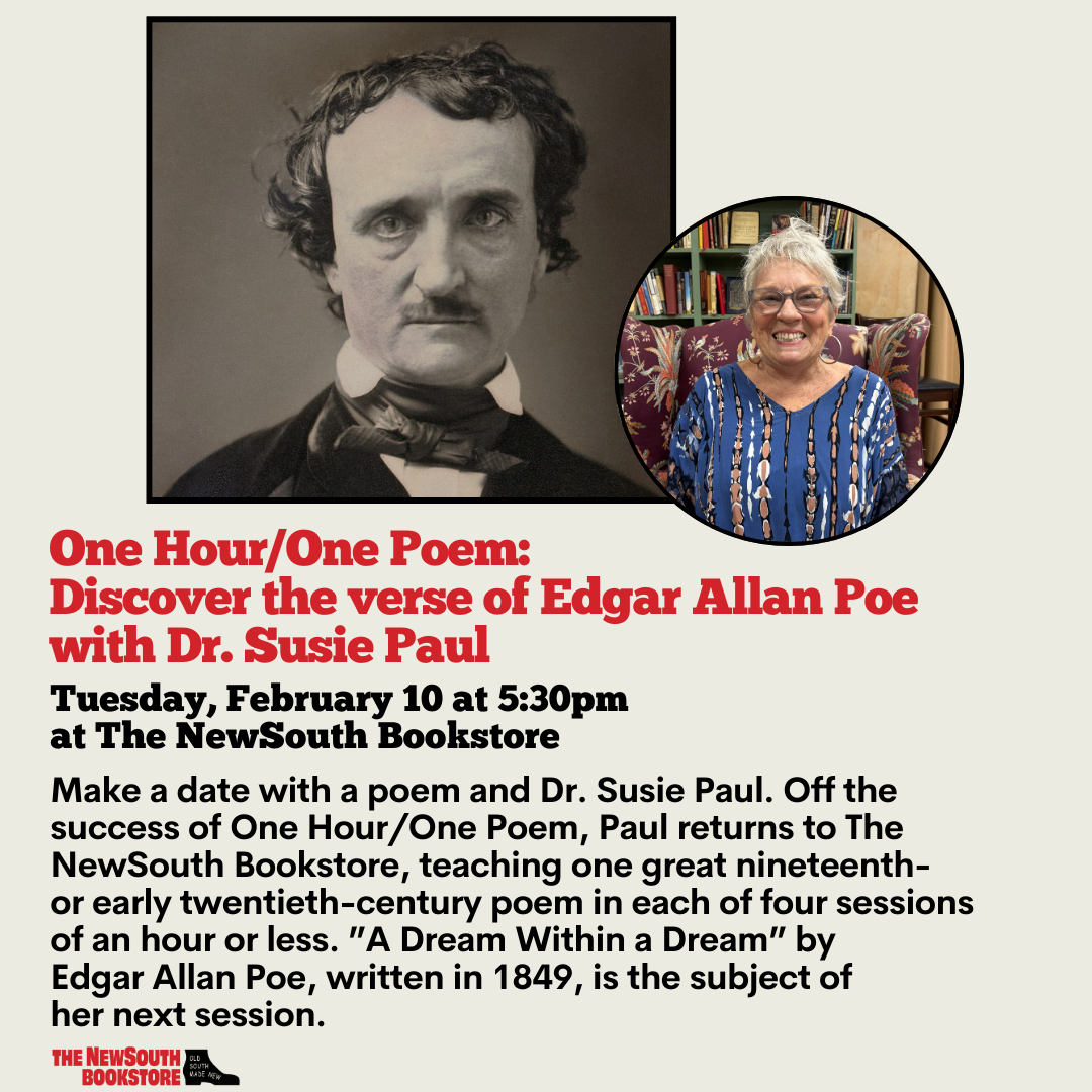 The NewSouth Bookstore 105 S. Court St, Montgomery, United StatesMake a date with a poem and Dr. Susie Paul. [...]