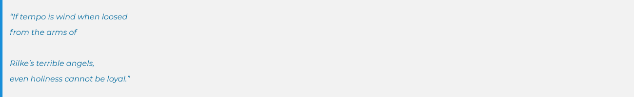 Stefanescu’s initial poem, “Byline, Be Sky,” is a teaser for her telling through poetic forms and musical language: